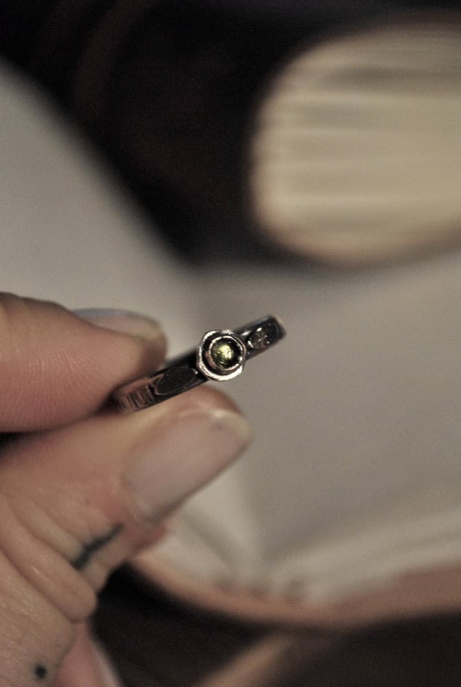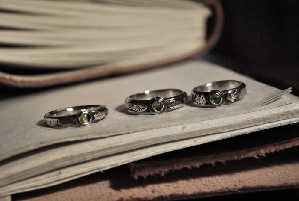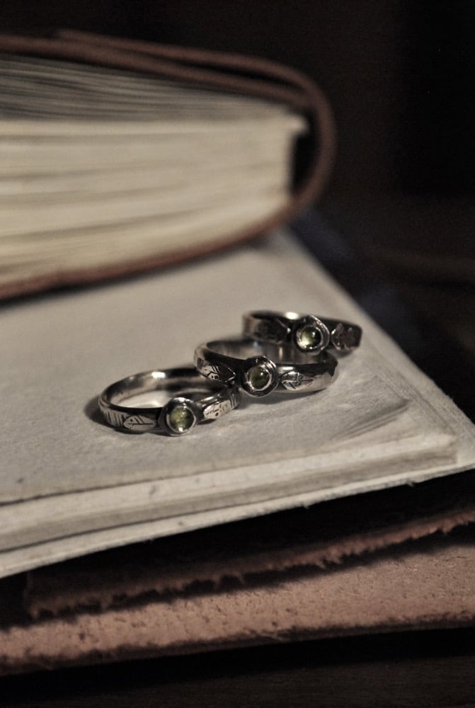 Anelli realizzati a mano in argento 925 e tormalina verde.