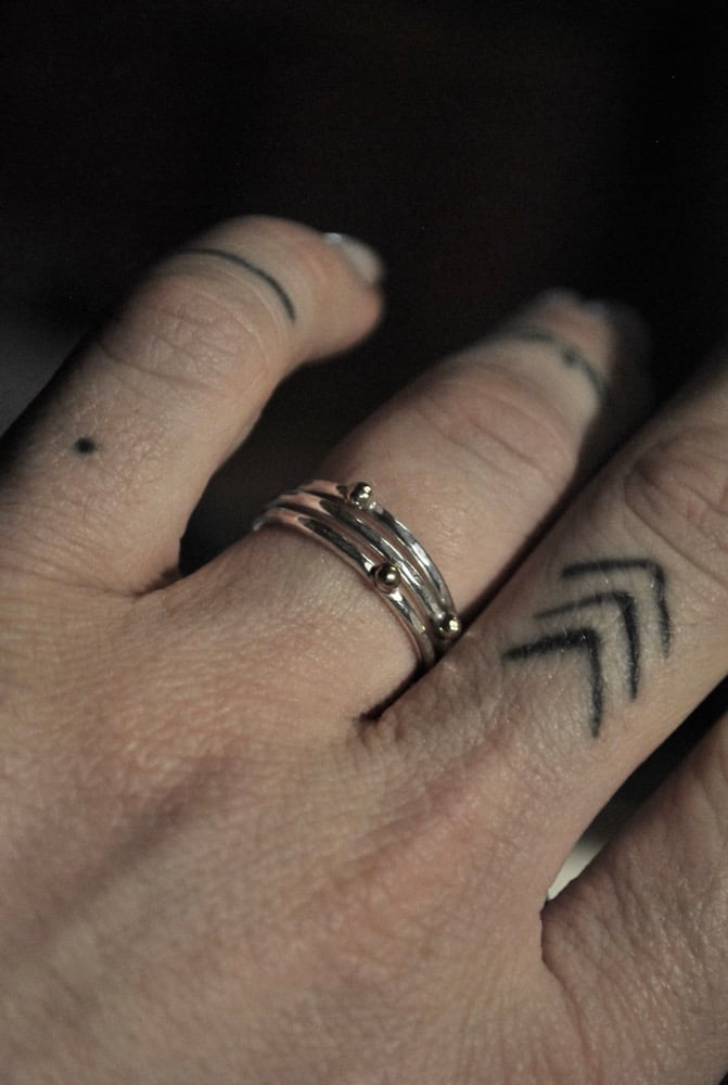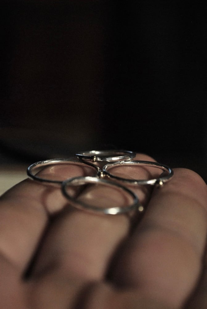 Anelli realizzati a mano in argento 925 e dettaglio in ottone.