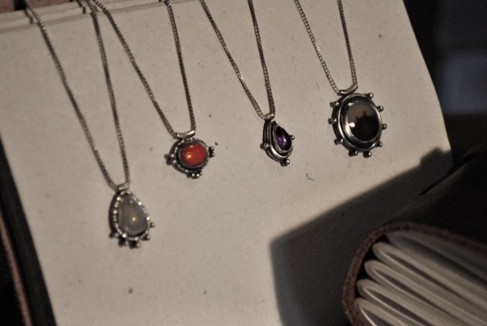 Ciondoli realizzati a mano in argento 925 e pietre dure.