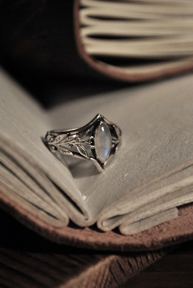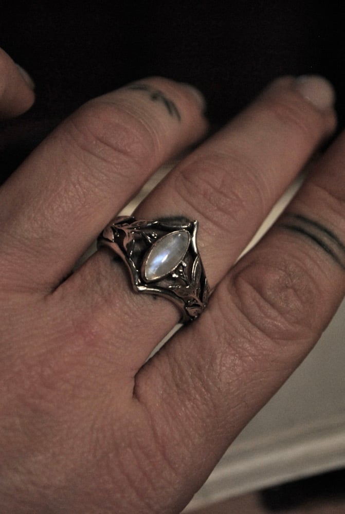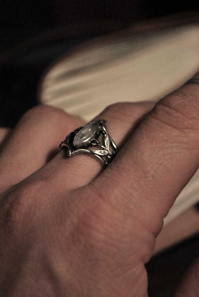 Anello realizzato a mano in argento 925 e Labradorite Bianca.